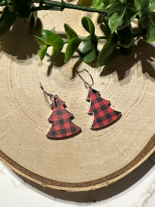Small Buffalo Plaid Acrylic Christmas Tree Earrings
