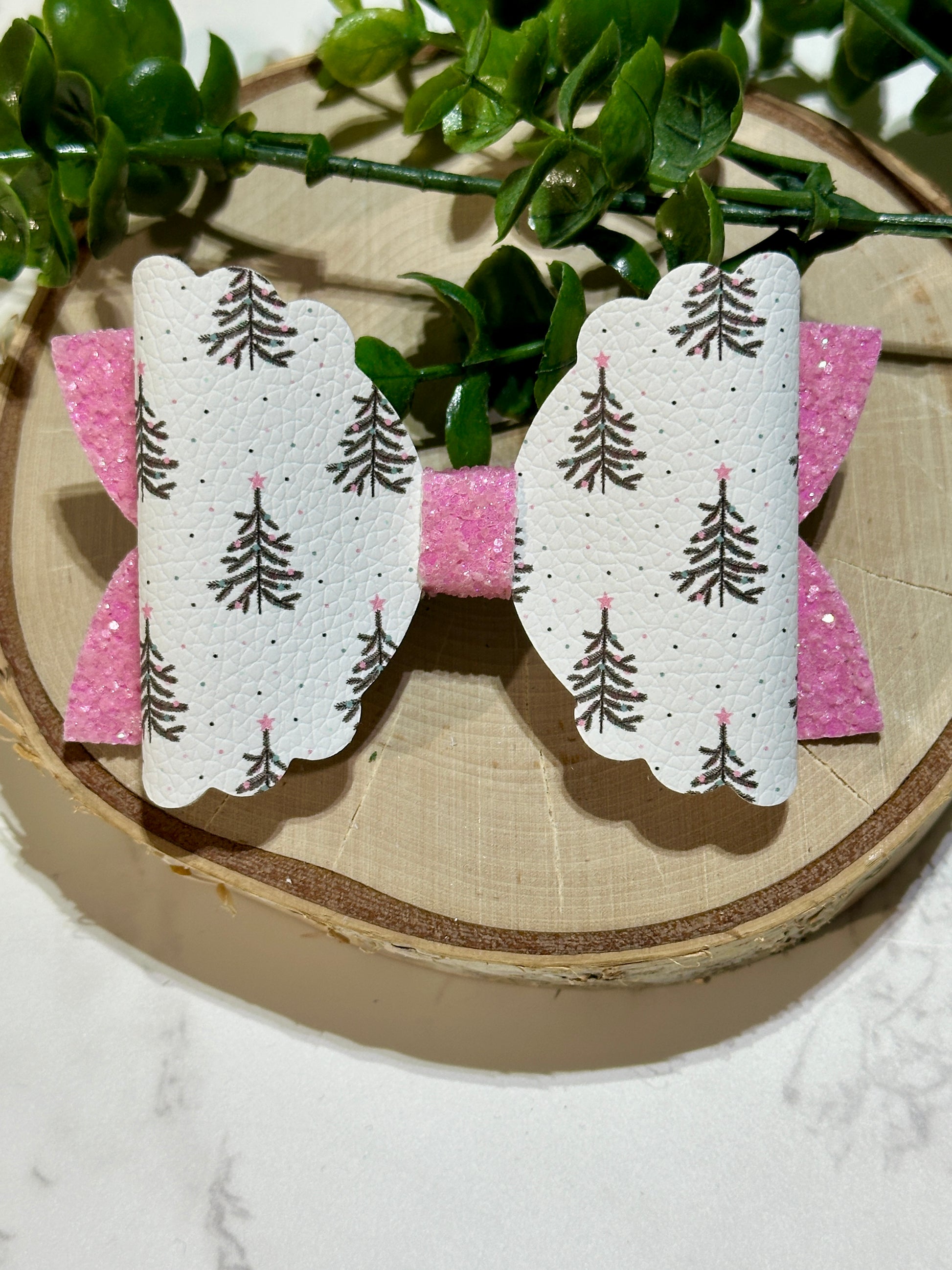 Simple Boho/Pink Christmas Tree Hairbow
